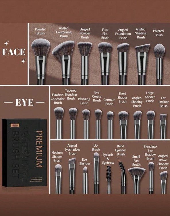 شامل براش های سایه، کرمپودر، کانسیلر و کانتور و پودر زنی✅